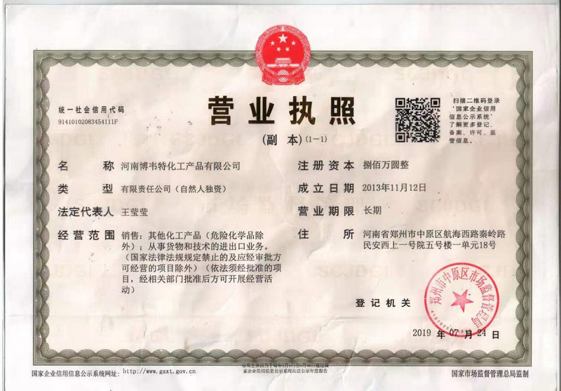 河南博韋特化工產(chǎn)品有限公司位于河南鄭州市是一個集科研、開發(fā)、生產(chǎn)銷售于一體的經(jīng)濟實體,總公司及生產(chǎn)基地位于河南省濮陽市. 公司有健全的管理體系和超前的管理意識,一流的科研隊伍,具有高級職稱6人,中級職稱18人,具有先進的生產(chǎn)設備和工藝。現(xiàn)代化的檢測儀器,高素質(zhì)的職工隊伍、龐大的客戶群體、完善的售后服務體制使產(chǎn)品暢銷覆蓋周邊省市。 公司先后被化工部評為無池漏工廠,清潔文明工廠,省系統(tǒng)先進企業(yè),重合同守信譽企業(yè),產(chǎn)品質(zhì)量信得過企業(yè)等。 公司奉行“質(zhì)量用戶至上、服務至上”的宗旨,用戶的滿意,就是我們的奮斗目標,熱忱歡迎各界朋友光臨。...